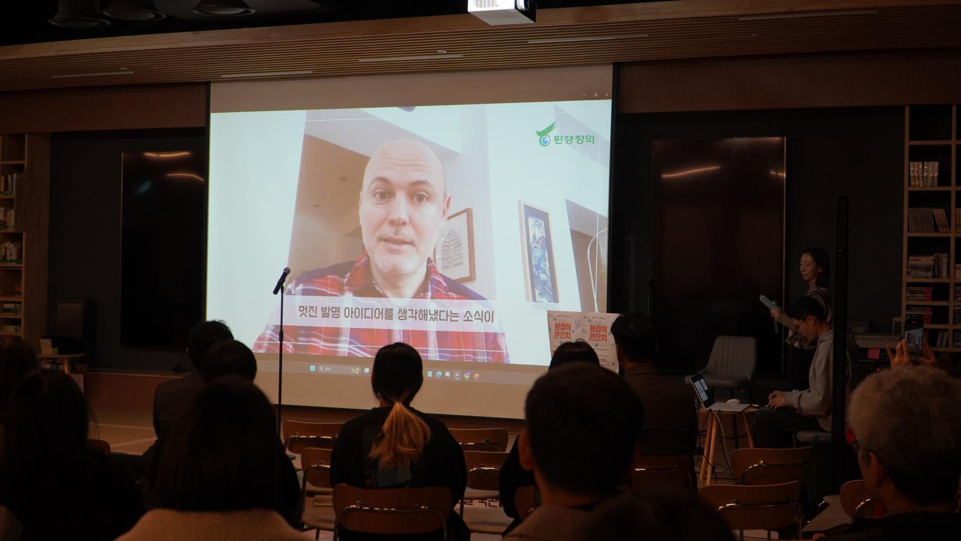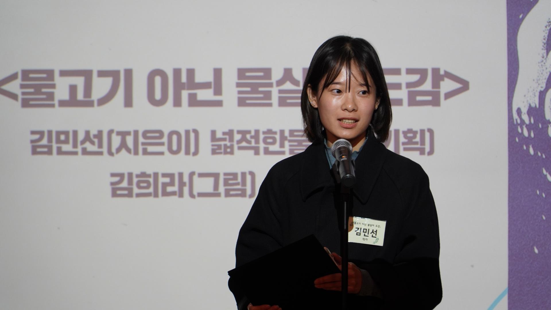 환경책큰잔치에 처음 참여하는 한 활동가는, “진심이 느껴진 따뜻한 행사였다.”라고 해요. 특히 작가분들과 함께 출판인분들의 수상 소감에서 말이죠. 대왕고래, 돌고래, 고등어, 광어, 감성돔 등 물살이, 거북이, 지렁이, 저어새, 꿀벌, 한강을 비롯한 수많은 비인간존재. 작은 마을부터 도시, 나라 그리고 그 속의 사람들. 그 밖에 책 속 주제에 대한 애정을 담아 한 글자, 한 글자 소감을 나누고, 그 진심을 바라보는 눈빛에 너무도 따뜻했던 자리였습니다.