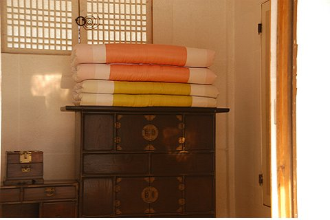 우리 전통 생활양식에서는 수납장을 거의 쓰지 않고 조그만 장롱 안에 옷을 개켜 놓고, 그 위에 이불을 예쁘게 접어 얹어, 그 자체로서 심미적인 효과를 내었다.