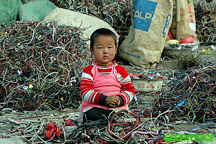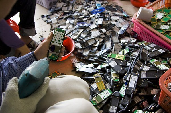 중국과 제3세계에서는 폐가전제품, 휴대폰등을 수입하여 납, 카드늄, 구리등 만을 골라내어 재 활용하고 있다.많은 노동자와 그의 아이들이 중금속 중독이라는 위험을 안고 살아간다.