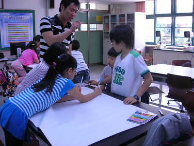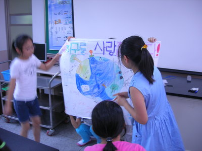 사진으로 아이들이 준비하고 발표하는 모습 보아요.